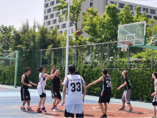 5月24日下午,澳门六合彩资料库 教职工在篮球场进行了2022年教职工篮球比赛的对决。澳门六合彩资料库 与人文学院、外语学院和后勤一组,展开了前八争夺赛。